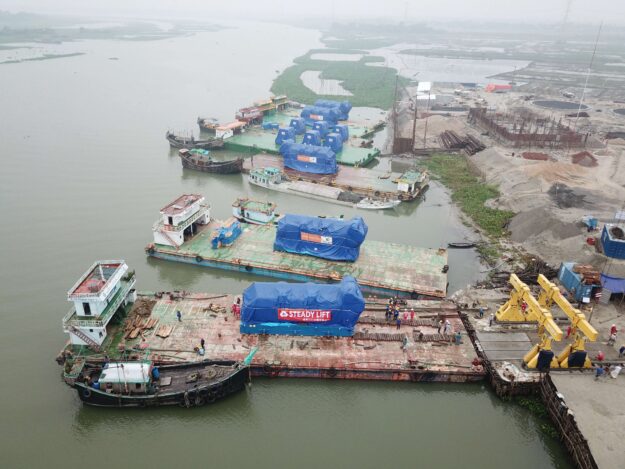 Steady Lift comes together with Ace Alliance Power Ltd. to power up Bangladesh Steady Lift was contracted with offloading and transporting a 300-Ton (386.65 CBM) engine by Wärtsilä from the cargo ship to the project site in Gazipur. The engine was first offloaded on to a barge and transported ashore near the jetty. A gantry system was set…