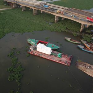 GE Power was tasked with supplying a gas turbine and other related services. Steady Lift was contracted to transport and install the 161-ton, 453 CBM with the dimensions (1,836CM*528CM*467CM). The engine was offloaded on to the barges and brought ashore. At the jetty constructed by the Steady Lift team, the turbine was offloaded on to Modular Trailers. The turbine was then delivered to the project site in Shajibazar.