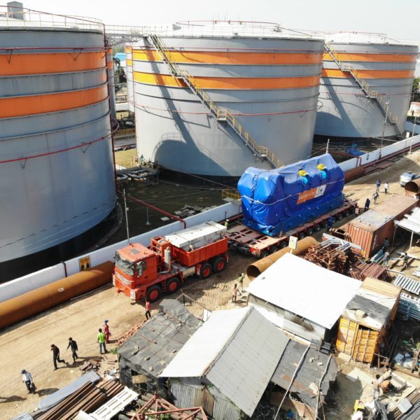 Steady Lift first received and handled the items at the port. The Engine was first loaded on to a barge and transported ashore. The Engine was then transported to the project site in Gazipur on 9-axle lines.